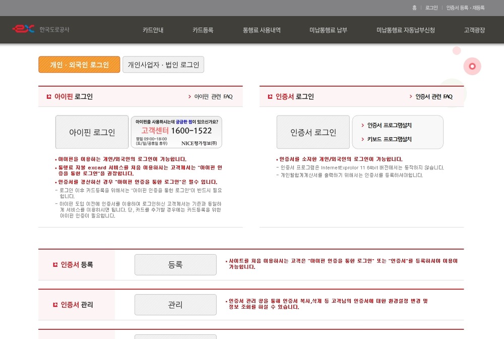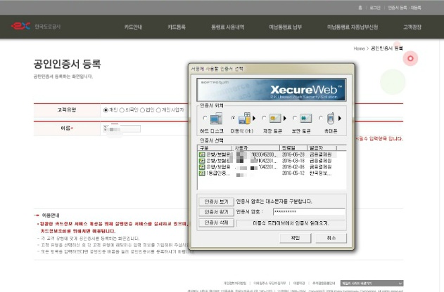 하지만 하이패스 미납요금을 후불카드로 납부하려면 카드 등록이 되어 있어야 하기 때문에, 역시 아이핀과 공인인증서 모두 등록은 되어야 합니다.