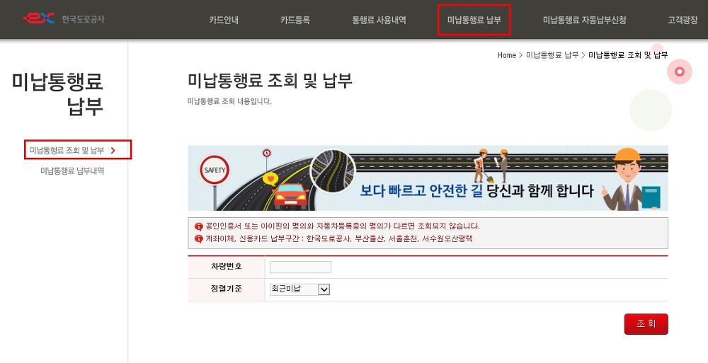 고속도로 하이패스 미납요금 조회와 납부 방법 안내