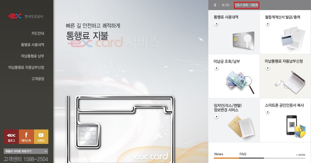 에서 공인인증서로 손쉽게 등록하고 로그인하신 후 미납요금을 조회하고 본인의 등록된 하이패스 카드로 납부할 수 있습니다.