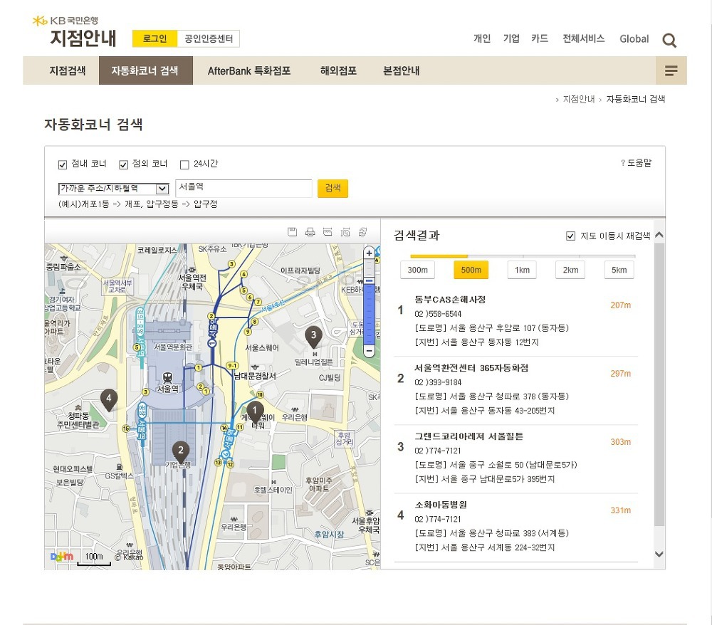 국민은행 ATM기의 위치 및 자세한 국민은행 ATM기 이용시간 확인방법은 (국민은행 홈페이지 접속 - 전체 서비스 - 지점 안내 - 자동화코너 검색 - 지역명 선택)또는 위에 올려드린 링크로도 확인 가능합니다.