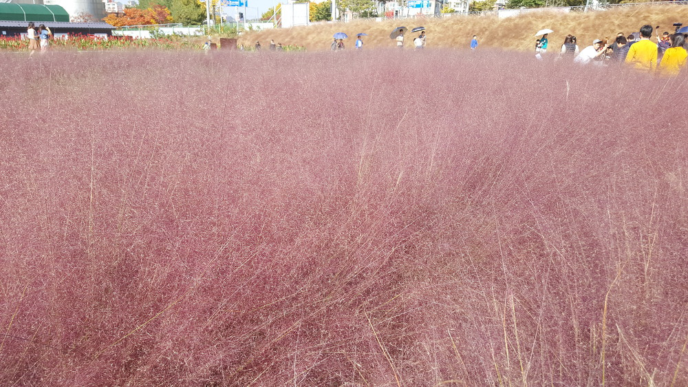 양주 핑크뮬리의 가장 아름다운 시기는 보통 10월 초입니다. 다만, 올해는 핑크뮬리 색상이 다소 바랬다는 느낌을 받았습니다. 하지만, 공원 초입에 있는 핑크뮬리는 여전히 화려하게 핑크빛을 뽐내고 있습니다.