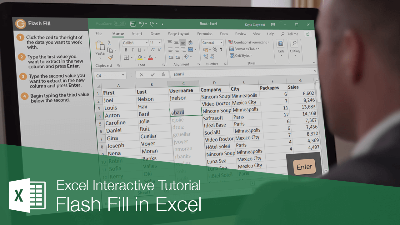 - 입력한 셀을 선택한 뒤, Ctrl + E 단축키를 누릅니다.